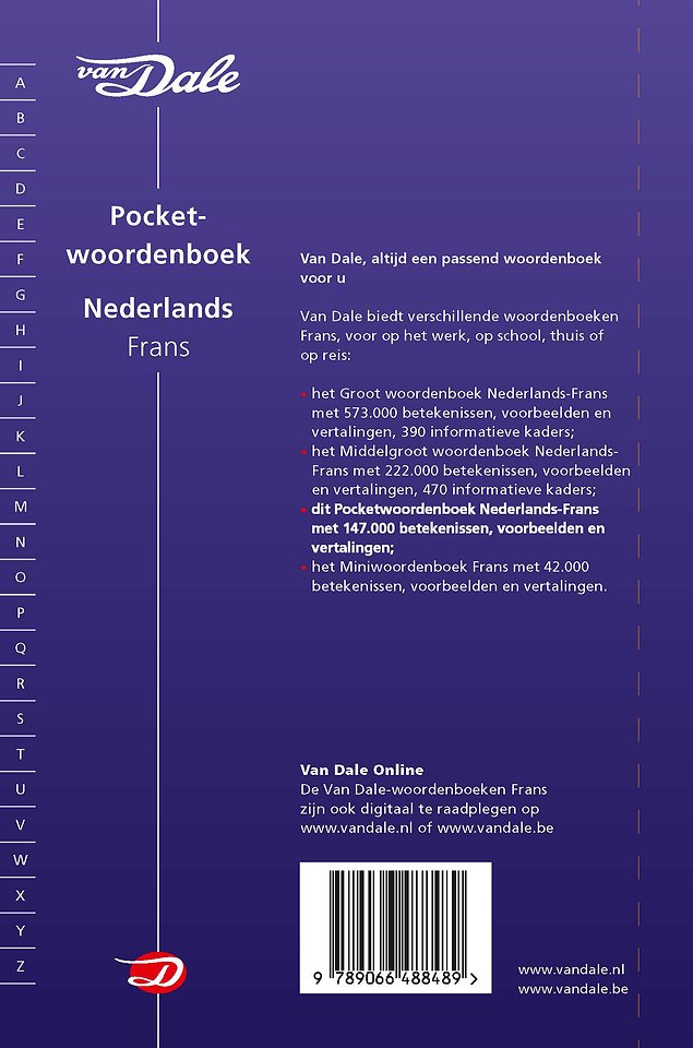 Deze vierde editie van het Van Dale Pocketwoordenboek Nederlands-Frans is een uitstekend, actueel en compact schoolwoordenboek waarmee iedere scholier slaagt. Dit, door docenten aanbevolen woordenboek voor de boekenlijst, bevat alle basisinformatie van het Frans die nodig is om op school of in de praktijk goed Frans te kunnen begrijpen, spreken of schrijven.