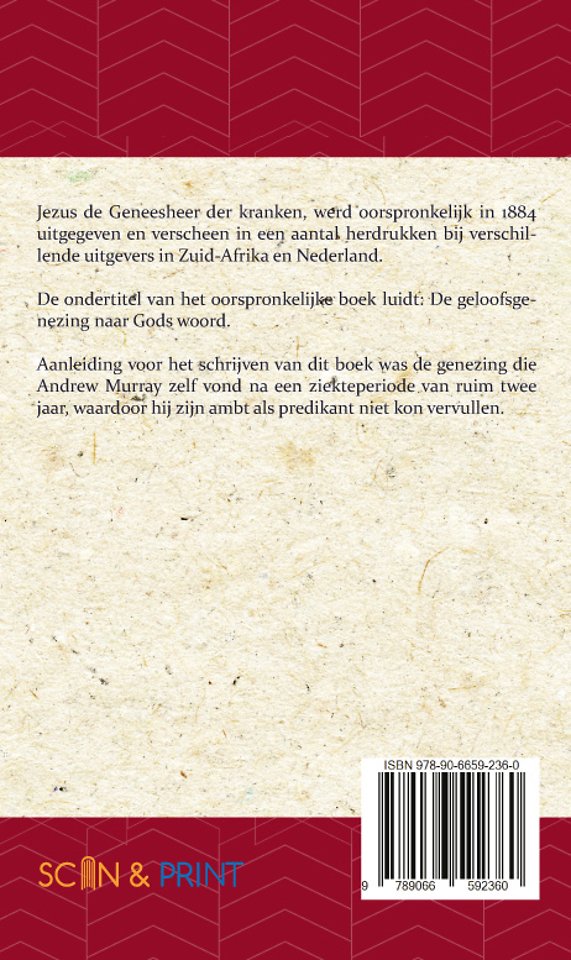 Jezus de Geneesheer der kranken, werd oorspronkelijk in 1884 uitgegeven en verscheen in een aantal herdrukken bij verschillende uitgevers in Zuid-Afrika en Nederland.
