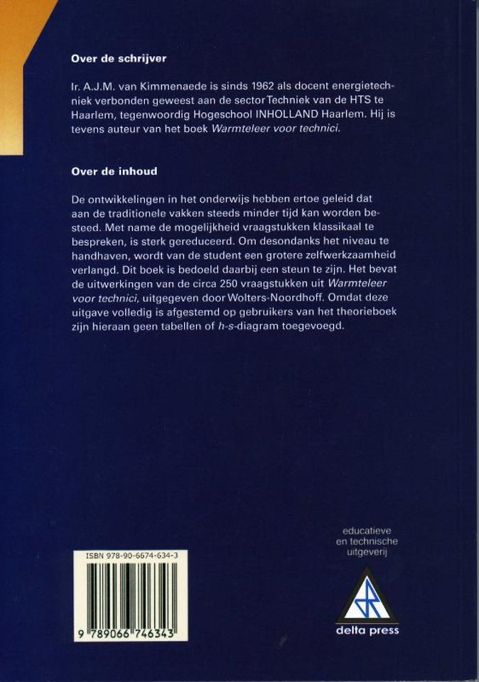 Voor de technische warmteleer is het maken van vraagstukken een essentieel onderdeel bij zelfwerkzaamheid. Dit boek is bedoeld om de student daarbij de helpende hand te bieden en sluit geheel aan bij de achtste druk van het theorieboek van ir. A.J.M. van Kimmenaede, uitgebracht door Stam Techniek onder de titel 'Warmteleer voor technici'. De hoofdstukindeling correspondeert met die van het theorieboek. Dit geldt ook voor de nummering van de formules.