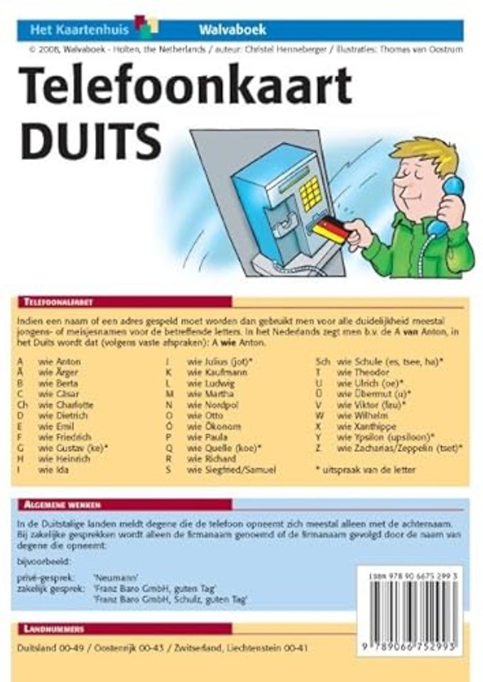 De meest praktische zinnen voor het adequaat telefoneren in het Duits direct bij de hand op een uitvouwbare geplastificeerde kaart. Acht pagina’s in totaal, uitgevoerd in vierkleurendruk en op een handzaam formaat.