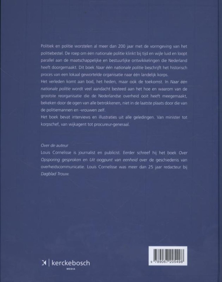 Politiek en politie worstelen al meer dan 200 jaar met de vormgeving van het politiebestel. De roep om één nationale politie klinkt bij tijd en wijle luid en loopt parallel aan de maatschappelijke en bestuurlijke ontwikkelingen die Nederland heeft doorgemaakt. Dit boek Naar één nationale politie beschrijft het historisch proces van een lokaal gewortelde organisatie naar één landelijk korps.