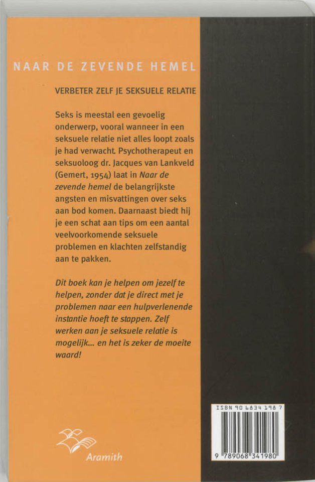 Seks is meestal een gevoelig onderwerp, vooral wanneer in een seksuele relatie niet alles loopt zoals je had verwacht. Psychotherapeut en seksuoloog dr. Jacques van Lankveld (Gemert, 1954) laat in 'Naar de zevende hemel' de belangrijkste angsten en misvattingen over seks aan bod komen. Daarnaast biedt hij je een schat aan tips om een aantal veelvoorkomende seksuele problemen en klachten zelfstandig aan te pakken.