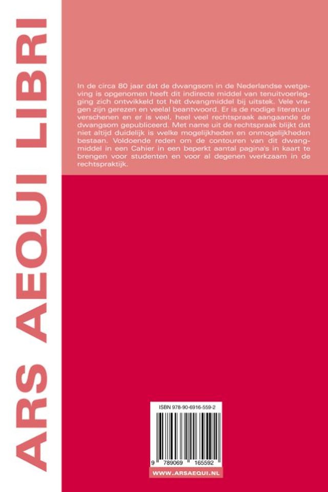 In de circa 80 jaar dat de dwangsom in de Nederlandse wetgeving is opgenomen heeft dit indirecte middel van tenuitvoerlegging zich ontwikkeld tot hèt dwangmiddel bij uitstek. Vele vragen zijn gerezen en veelal beantwoord. Er is de nodige literatuur verschenen en er is veel, heel veel rechtspraak aangaande de dwangsom gepubliceerd. Met name uit de rechtspraak blijkt dat niet altijd duidelijk is welke mogelijkheden en onmogelijkheden bestaan. Voldoende reden om de contouren van dit dwangmiddel in een Cahier in een beperkt aantal pagina's in kaart te brengen voor studenten en voor al degenen werkzaam in de rechtspraktijk.
