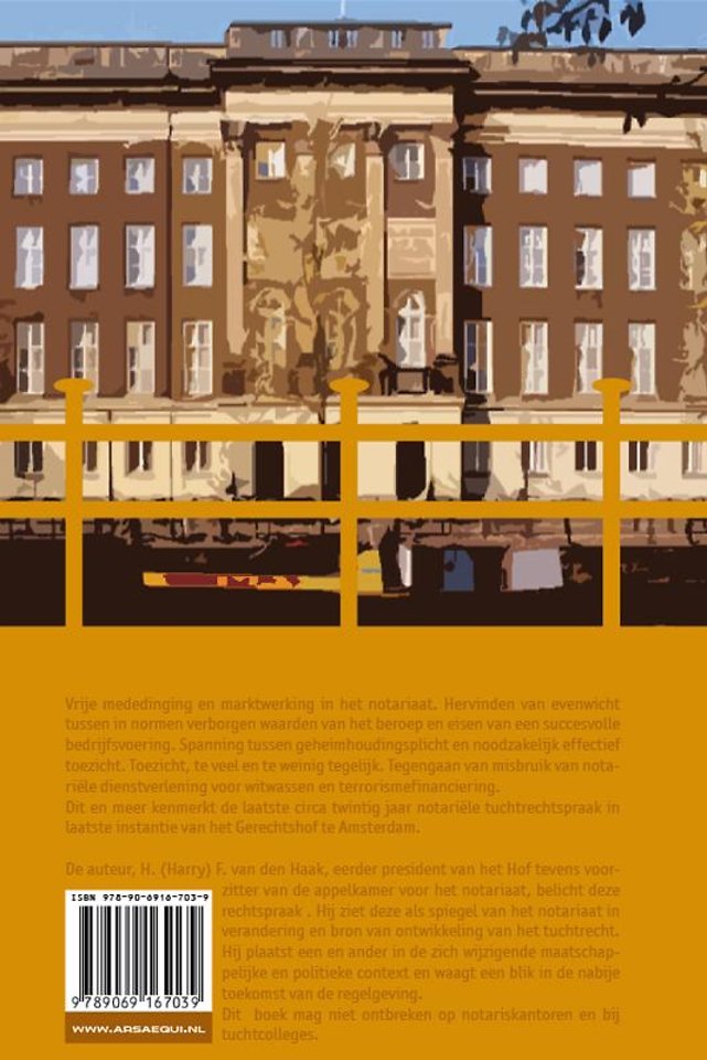 De auteur, H. (Harry) F. van den Haak, eerder president van het Hof tevens voorzitter van de appelkamer voor het notariaat, belicht deze rechtspraak . Hij ziet deze als spiegel van het notariaat in verandering en bron van ontwikkeling van het tuchtrecht. Hij plaatst een en ander in de zich wijzigende maatschappelijke en politieke context en waagt een blik in de nabije toekomst van de regelgeving.