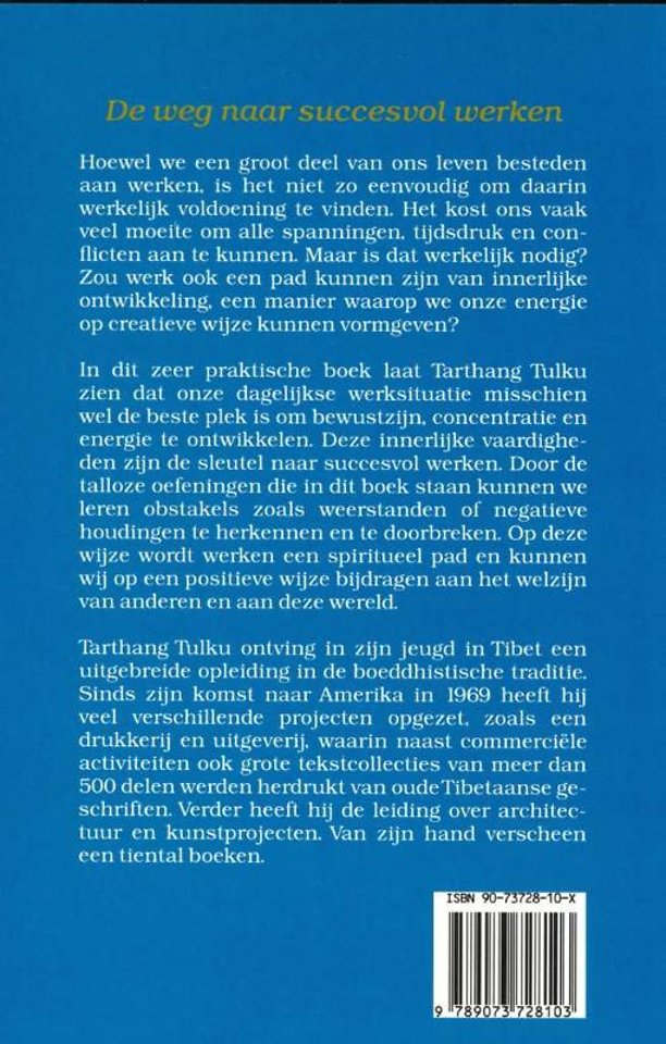 In dit praktische boek laat Tarthang Tulku zien dat onze dagelijkse werksituatie misschien wel de beste plek is om bewustzijn, concentratie en energie te ontwikkelen. Deze innerlijke vaardigheden zijn de sleutel naar succesvol werken. Door de talloze oefenigen die in dit boek staan kunnen we leren obstakels zoals weerstanden of negatieve houdingen te herkennen en te doorbreken. Op deze wijze wordt werken een spiritueel pad en kunnen wij op een positieve wijze bijdragen aan het welzijn van anderen en aan deze wereld.