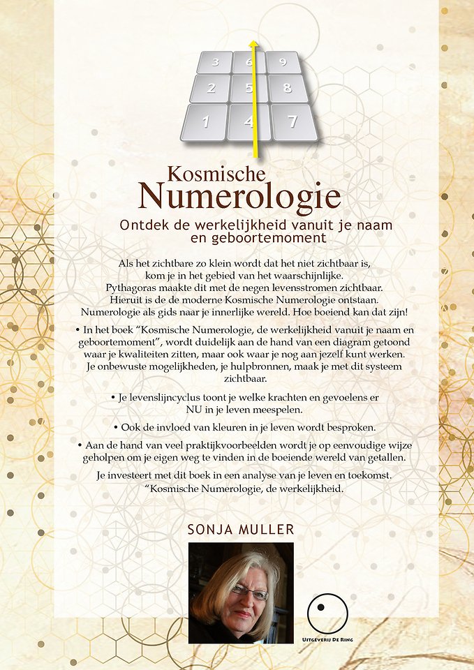 • In het boek “Kosmische Numerologie, de werkelijkheid vanuit je naam en geboortemoment”, wordt duidelijk aan de hand van een diagram getoond waar je kwaliteiten zitten, maar ook waar je nog aan jezelf kunt werken. Je onbewuste mogelijkheden, je hulpbronnen, maak je met dit systeem zichtbaar.