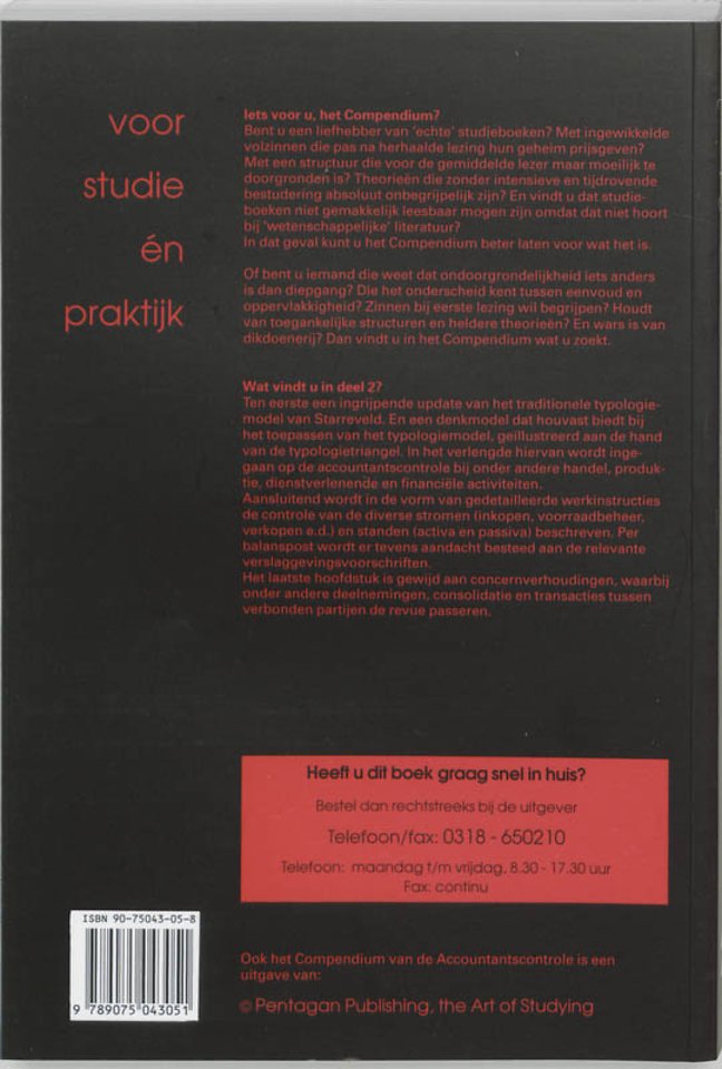 Ten eerste een ingrijpende update van het traditionele typologiemodel van Starreveld. En een denkmodel dat houvast biedt bij het toepassen van het typologiemodel, geïllustreerd aan de hand van de typologietriangel. In het verlengde hiervan wordt ingegaan op de accountantscontrole bij onder andere handel, produktie, dienstverlenende en financiële activiteiten.
