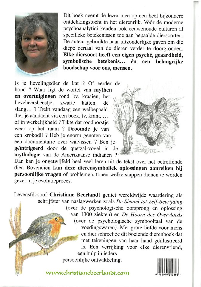 Levensfilosoof Christiane Beerlandt geniet wereldwijde waardering als schrijfster van naslagwerken zoals De Sleutel tot Zelf-Bevrijding (over de psychologische oorsprong en oplossing van 1300 ziekten) en De Hoorn des Overvloeds (over de psychologische symbooltaal van de voedingswaren). Met grote liefde voor mens en dier schreef ze dit boeiende dierenboek dat met tekeningen van haar hand geïllustreerd is. Een verrijking voor elke dierenvriend, een hulp in ieders persoonlijke ontwikkeling.