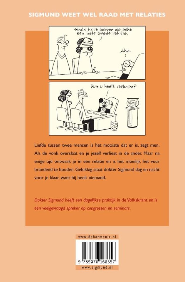 Sigmund weet wel raad met relaties verschijnt als zevende deel in de succesvolle serie Sigmund weet wel raad met... Eerder gaf dokter Sigmund welgemeende doch controversiële adviezen over vrouwen, vakantie, managers, kinderen, feestdagen en mannen.