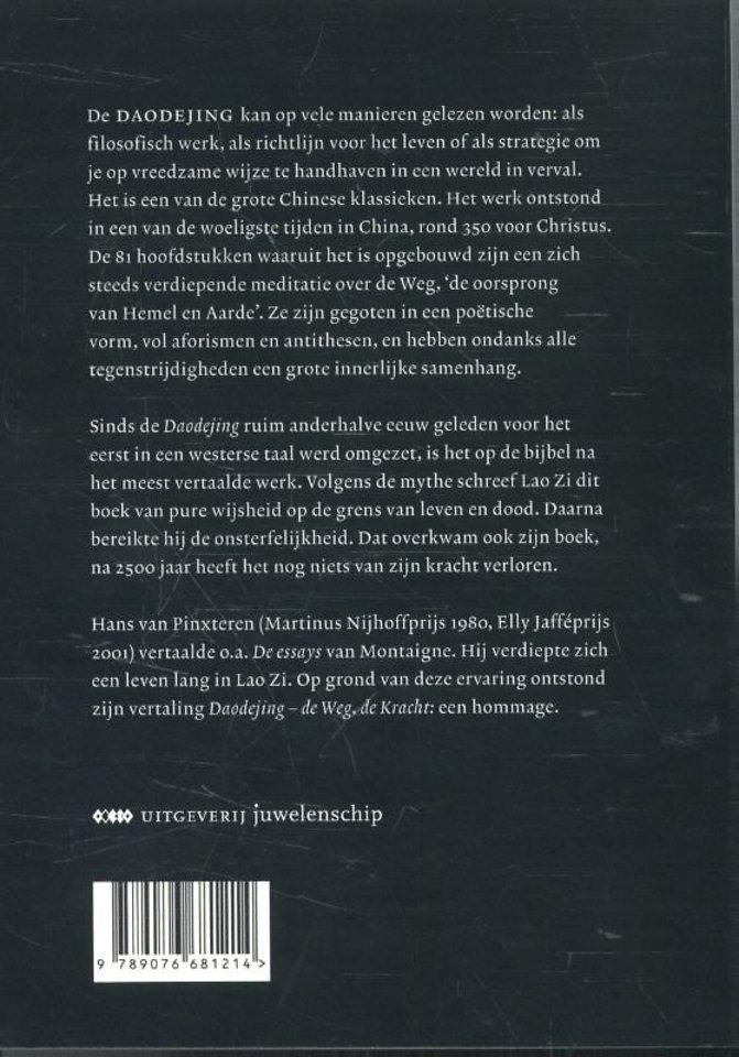Hans van Pinxteren (Martinus Nijhoffprijs 1980, Elly Jafféprijs 2001) vertaalde o.a. De essays van Montaigne. Hij verdiepte zich een leven lang in Lao Zi. Op grond van deze ervaring ontstond zijn vertaling Daodejing - de Weg, de Kracht: een hommage.