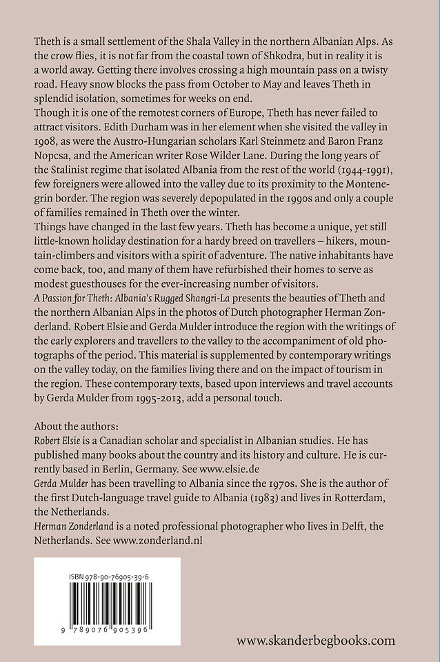 A Passion for Theth: Albania’s Rugged Shangri-La presents the beauties of Theth and the northern Albanian Alps in the photos of Dutch photographer Herman Zonderland. Robert Elsie and Gerda Mulder introduce the region with the writings of