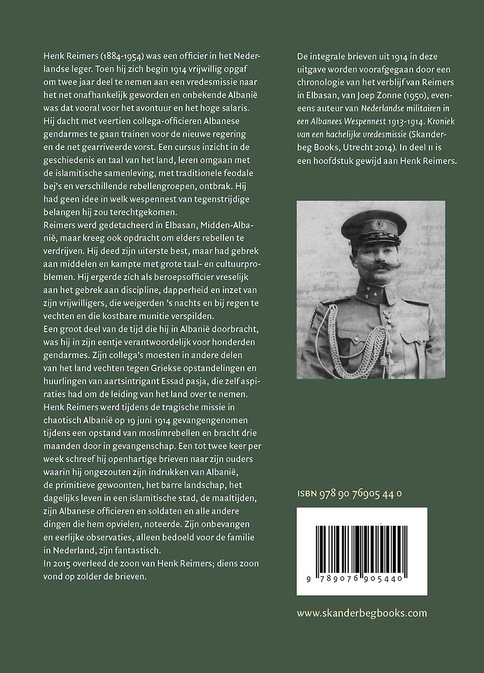 Henk Reimers (1884-1954) was een officier in het Nederlandse leger. Toen hij zich begin 1914 vrijwillig opgaf om twee jaar deel te nemen aan een vredesmissie naar het net onafhankelijk geworden en onbekende Albanië was dat vooral voor het avontuur en het hoge salaris. Hij dacht met veertien collega-officieren Albanese gendarmes te gaan trainen voor de nieuwe regering en de net gearriveerde vorst. Een cursus inzicht in de geschiedenis en taal van het land, leren omgaan met de islamitische samenleving, met traditionele feodale bej’s en verschillende rebellengroepen, ontbrak. Hij had geen idee in welk wespennest van tegenstrijdige belangen hij zou terechtgekomen.
