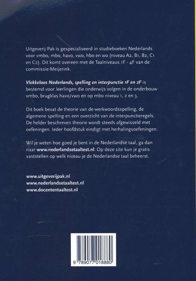 Vlekkeloos Nederlands taalniveau 1F en 2F