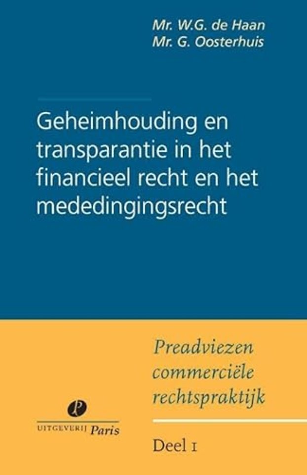 1. Geheimhouding en transparantie in het financieel recht (Mr. W.G. de Haan)