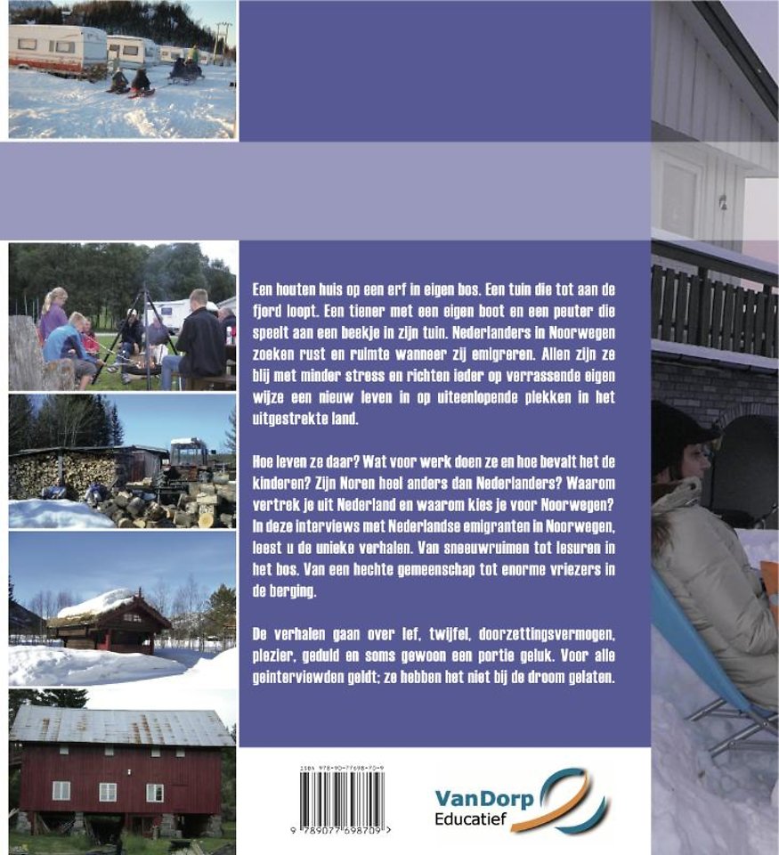In dit boek met interviews met Nederlandse emigranten in Noorwegen, leest u de unieke verhalen. Van sneeuwruimen tot lesuren in het bos. Van een hechte gemeenschap tot enorme vriezers in de berging. De verhalen gaan over lef, twijfel, doorzettingsvermogen, plezier, geduld en soms gewoon een portie geluk. Voor alle geinterviewden geldt; ze hebben het niet bij de droom gelaten. Het boek is rijk geillustreerd met foto's.