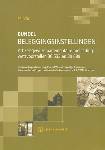 Het Wetenschappelijk Bureau van PricewaterhouseCoopers Belastingadviseurs heeft, onder eindredactie van prof. dr. Roland Brandsma, een helder overzicht gemaakt van alle wijzigingen. Daarnaast is per wetsartikel de parlementaire toelichting opgenomen, inclusief de wijzigingen die zijn aangebracht in het wetgevingsproces. De bundel bevat ook de brief van de minister en staatssecretaris van Financiën aan de Tweede Kamer waarin de bewindslieden ingaan op de aanbevelingen van de Commissie Modernisering Beleggingsinstellingen en de concurrentiepositie van beleggingsinstellingen in Europees perspectief.