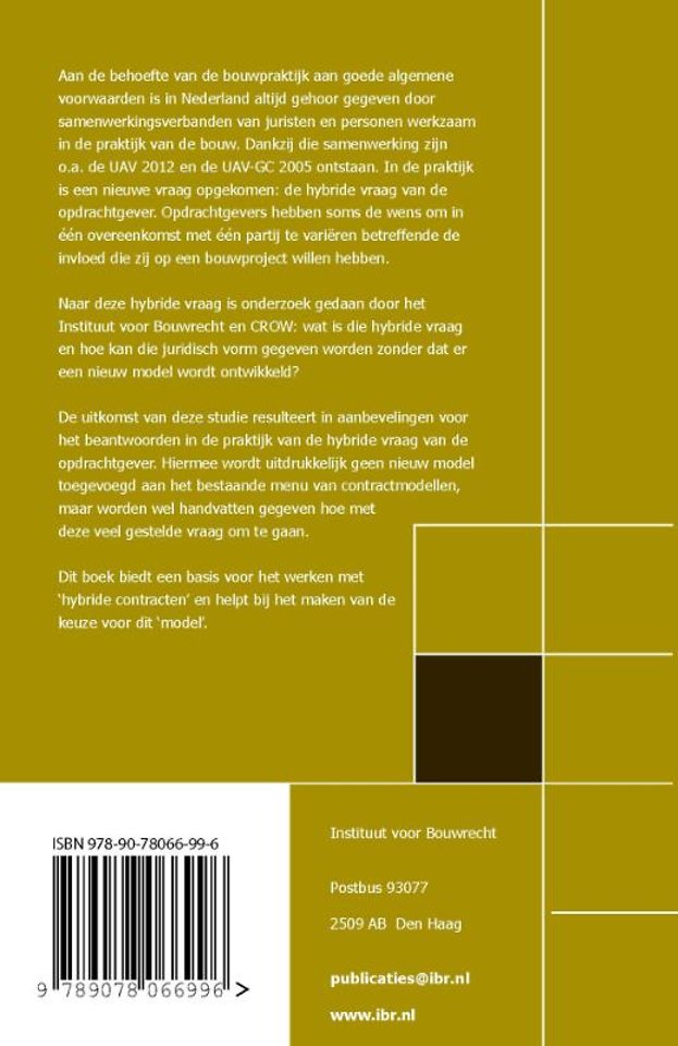 bouwcontracten hybride contracten bouwrecht uav opdrachtgever opdrachtnemer contractmanagement aansprakelijkheid geïntegreerde contracten ontwerptaken vraagspecificatie crow bouwsector uniforme voorwaarden juridische aspecten instituut voor bouwrecht praktijkonderzoek contractmodellen bouwmarkt