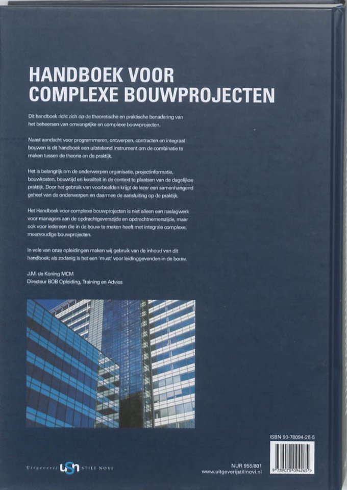 Het Handboek complexe projecten is niet alleen een naslagwerk voor managers aan de opdrachtgeverszijde en opdrachtnemerszijde, maar ook voor iedereen die in de bouw te maken heeft met integrale complexe, meervoudige bouwprojecten.