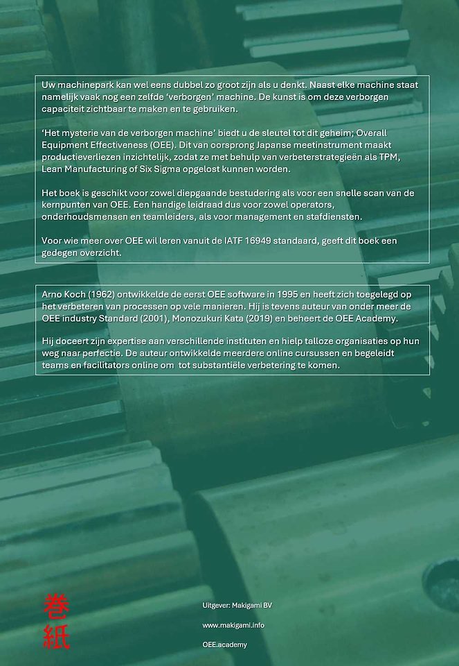 Uw machinepark kan wel eens dubbel zo groot zijn als u denkt. Naast elke machine staat namelijk vaak nog een zelfde 'verborgen' machine. De kunst is om deze verborgen capaciteit zichtbaar te maken en te gebruiken. 'Het mysterie van de verborgen machine' biedt u de sleutel tot dit geheim; Overall Equipment Effectiveness (OEE). DIt van oorsprong Japanse meetinstrument maakt productieverliezen inzichtelijk, zodat ze met behulp van verbeterstrategieen als TPM, Lean Manufacturing of Six Sigma opgelost kunnen worden.