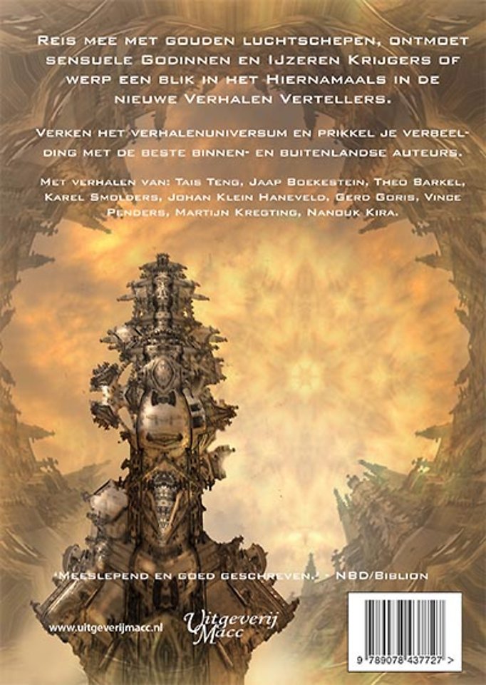 Reis mee met gouden luchtschepen, ontmoet sensuele godinnen en ijzeren krijgers en werp een blik in het hiernamaals. Science Fiction, Fantasy en een vleugje Griezel, in de nieuwe Verhalen Vertellers staan weer de beste auteurs verzameld.
