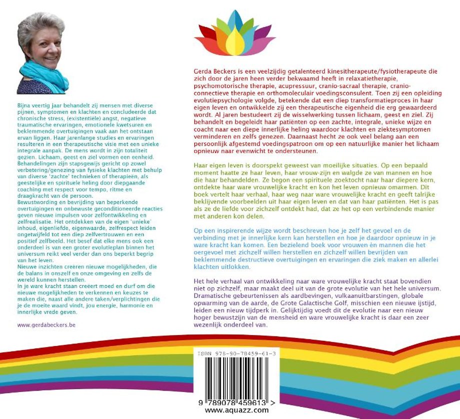 Haar eigen leven is doorspekt geweest van moeilijke situaties. Op een bepaald moment haatte ze haar leven, haar vrouw-zijn en walgde ze van mannen en hoe die haar behandelden. Ze begon een spirituele zoektocht naar haar diepere kern, ontdekte haar ware vrouwelijke kracht en kon het leven opnieuw omarmen. Dit boek vertelt haar verhaal, haar weg naar ware vrouwelijke kracht en geeft talrijke beklijvende voorbeelden uit haar eigen leven en dat van haar patiënten. Het is pas als ze de liefde voor zichzelf ontdekt had, dat ze het op een verbindende manier met anderen kon delen.