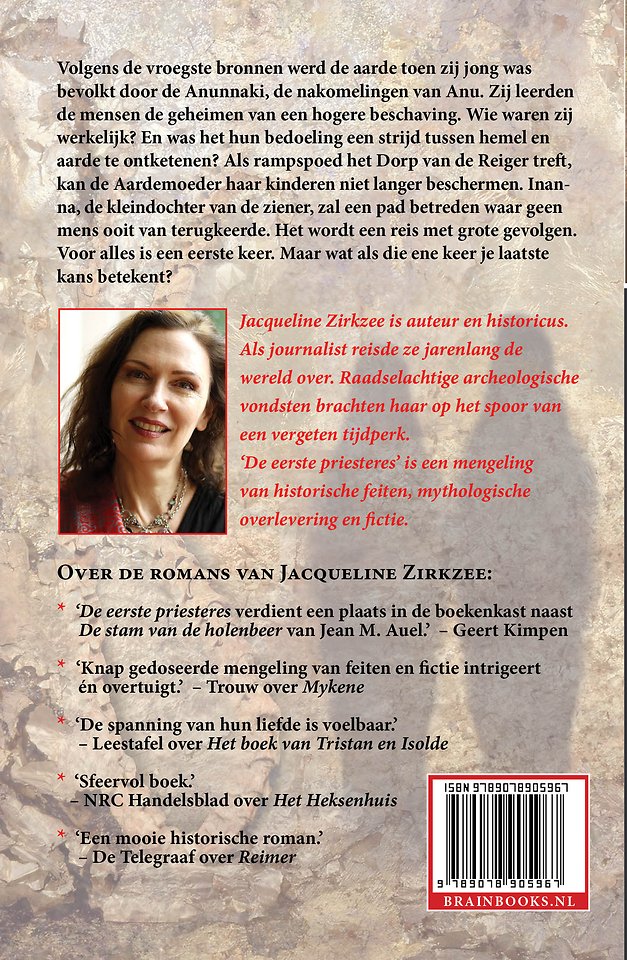 Jacqueline Zirkzee is auteur en historicus. Als journalist reisde ze jarenlang de wereld over. Raadselachtige archeologische vondsten brachten haar op het spoor van een vergeten tijdperk. De eerste priesteres is een mengeling van historische feiten, mythologische overlevering en fictie.