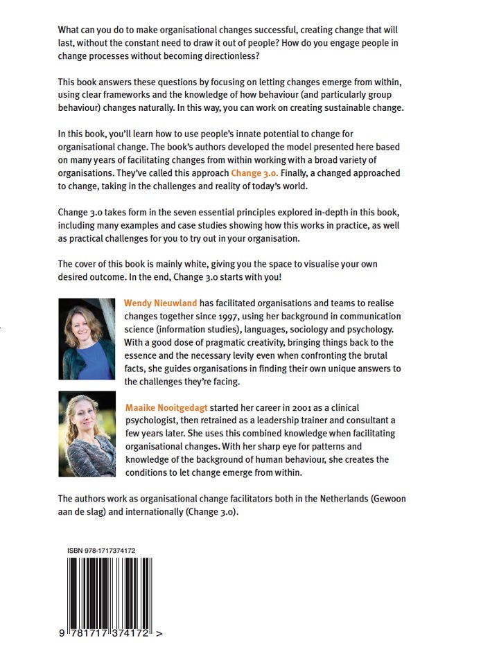 In dit boek laten we zien hoe je ieders aangeboren vermogen te veranderen kunt gebruiken voor organisatieverandering. We putten daarvoor uit onze eigen ervaringen met het faciliteren van verandering in organisaties van binnenuit onder de titel 'Veranderen 3.0'.