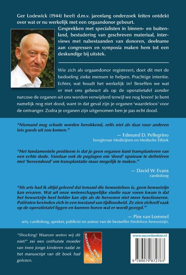 De resultaten van zijn onderzoek kunnen confronterend zijn voor wie zich niet of nauwelijks in dit thema heeft verdiept en voor nabestaanden van orgaandonoren. Lodewick beseft dit heel goed en hoopt dat deze mensen dit boek niet als een beschuldiging opvatten. Met de kennis van toen is een registratie tot stand gekomen of een besluit genomen.