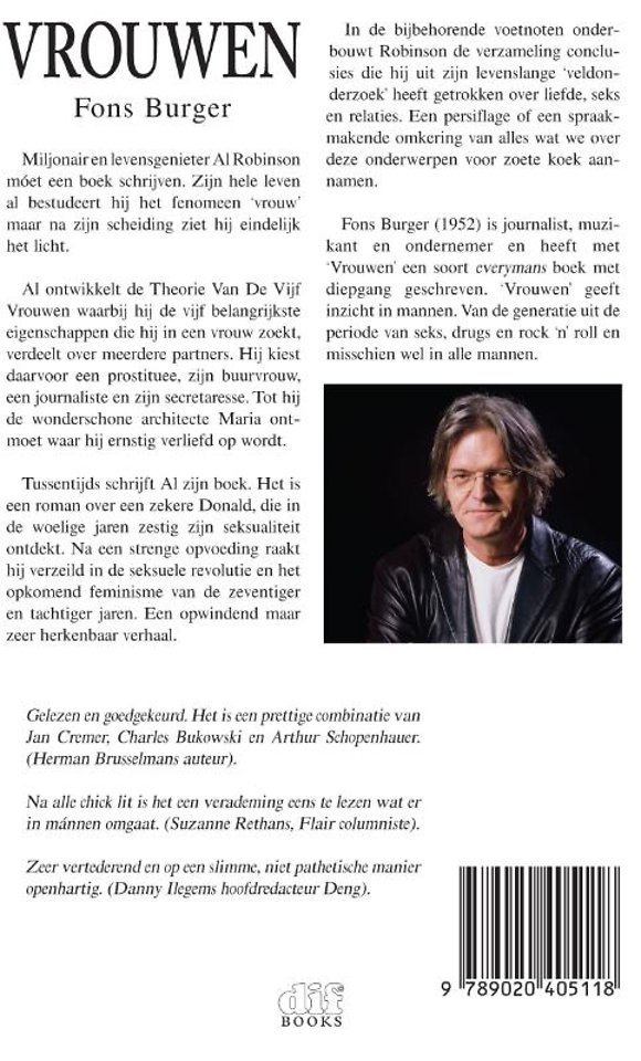 Fons Burger (1952) is journalist, muzikant en ondernemer en heeft met "vrouwen' een soort everymans boek met diepgang geschreven. 'Vrouwen' geeft inzicht in mannen. Van de generatie uit de periode van seks, drugs en rock 'n' roll en misschien wel in alle mannen.