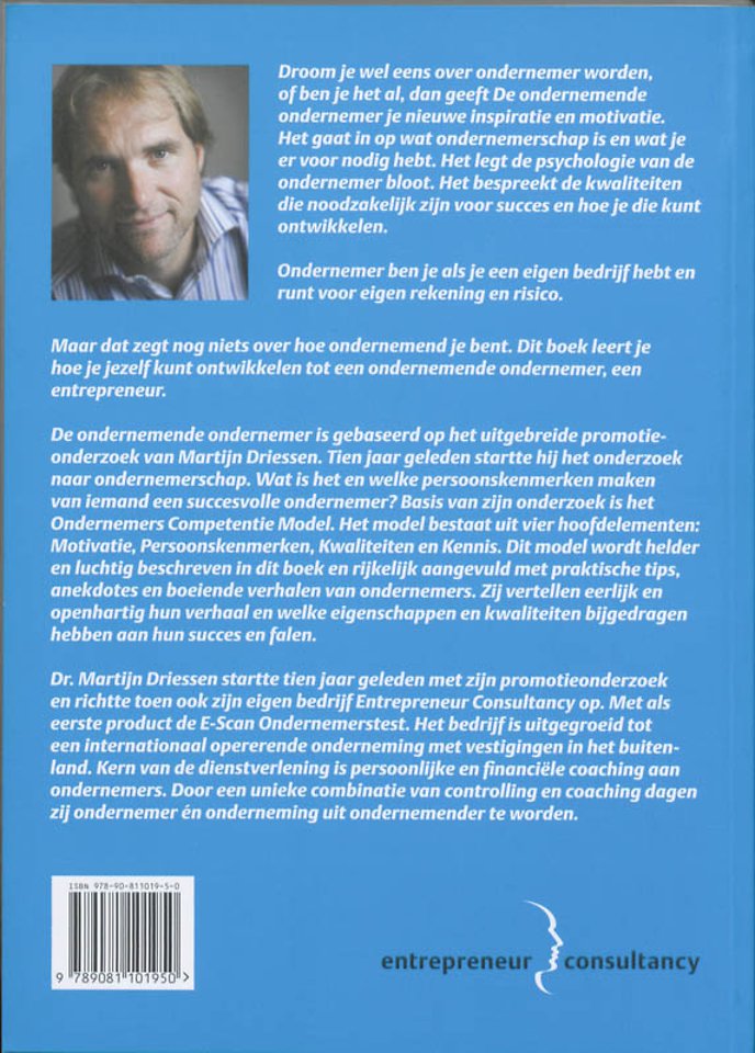 Meer over Martijn DriessenDroomt u wel eens over ondernemer worden, of bent u het al, dan geeft 'De ondernemende ondernemer' u nieuwe inspiratie en motivatie. Het gaat in op wat ondernemerschap is en wat u er voor nodig hebt. Het legt de psychologie van de ondernemer bloot. Het bespreekt de kwaliteiten die noodzakelijk zijn voor succes en hoe u die kunt ontwikkelen. Na de eerste uitgave in 2007 is dit de volledig herziene vijfde druk.