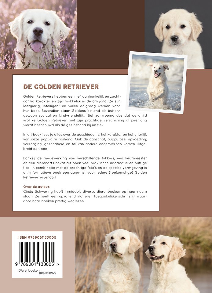 Dankzij de medewerking van verschillende fokkers, een keurmeester en een dierenarts bevat dit boek veel praktische informatie en nuttige tips. De vlotte en toegankelijke schrijfstijl van Cindy Schwering zorgt ervoor dat het boek prettig wegleest. In combinatie met de talrijke mooie foto’s en de aantrekkelijke vormgeving is dit informatieve boek een aanwinst voor iedere (toekomstige) Golden Retriever-eigenaar!