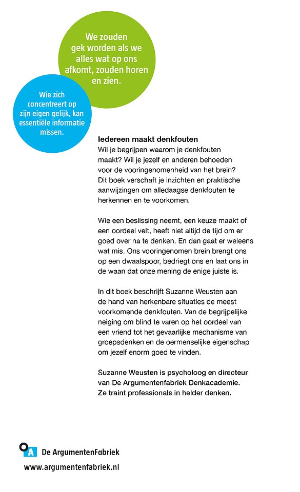 psychologie cognitieve bias denkfouten besluitvorming zelfbedrog kritisch denken system 1 en system 2 rationeel denken confirmation bias gedragseconomie heuristieken vooroordelen zelfreflectie persoonlijke ontwikkeling affectheuristiek beschikbaarheidsfout groepsdenken cognitieve dissonantie negativity bias hindsight bias selectieve waarneming endowment effect stereotypen bevestigingsbias attributiefouten representativiteitsfout ketellogica verloren-kostenfout zero risk bias information bias
