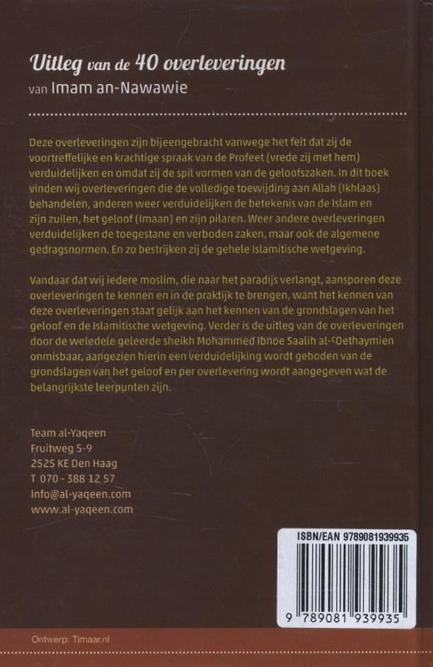 Vandaar dat wij iedere moslim, die naar het paradijs verlangt, aansporen deze overleveringen te kennen en in de praktijk te brengen, want het kennen van deze overleveringen staat gelijk aan het kennen van de grondslagen van het geloof en de Islamitische wetgeving. Verder is de uitleg van de overleveringen door de weledele geleerde sheikh Mohammed Ibnoe Saalih al-cOethaymien onmisbaar, aangezien hierin een verduidelijking wordt geboden van de grondslagen van het geloof en per overlevering wordt aangegeven wat de belangrijkste leerpunten zijn.
