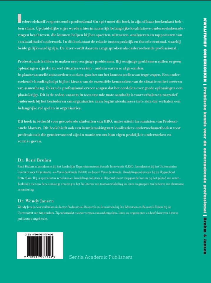 Iedere zichzelf respecterende professional (in spé) moet dit boek in zijn of haar boekenkast hebben staan. Op duidelijke wijze worden hierin namelijk belangrijke kwalitatieve onderzoeksbenaderingen beschreven, die kunnen helpen bij het opzetten, uitvoeren, analyseren en rapporteren van een kwalitatief onderzoek.