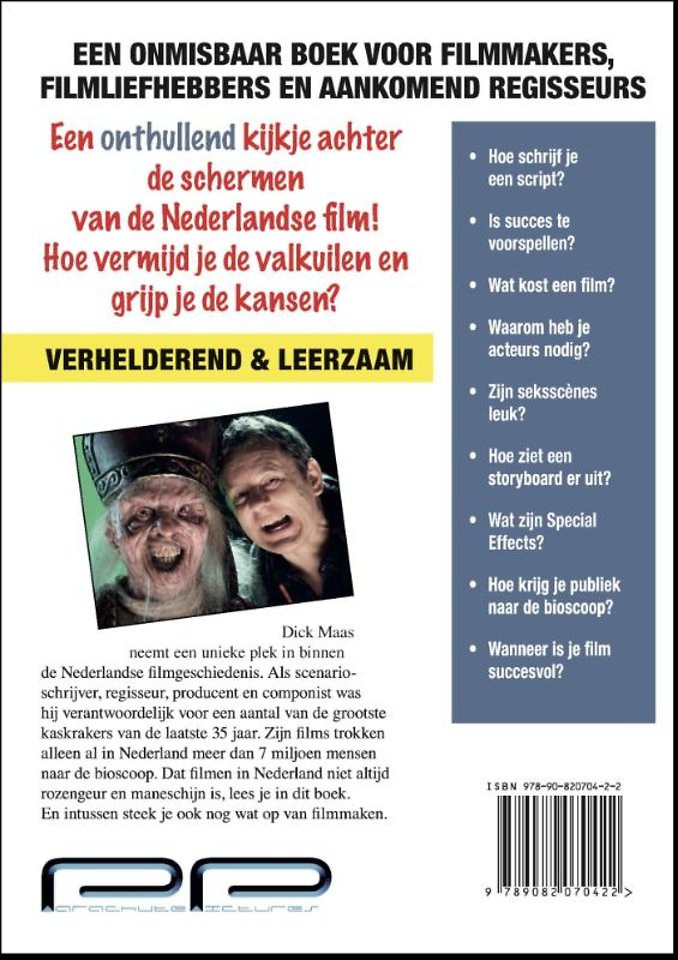 Dick Maas neemt een unieke plek in binnen de Nederlandse filmgeschiedenis. Als scenario-schrijver, regisseur, producent en componist was hij verantwoordelijk voor een aantal van de grootste kaskrakers van de laatste 35 jaar. Zijn films trokken alleen al in Nederland meer dan 7 miljoen mensen naar de bioscoop. Dat filmen in Nederland niet altijd rozengeur en maneschijn is, lees je in dit boek. En intussen steek je ook nog wat op van filmmaken.
