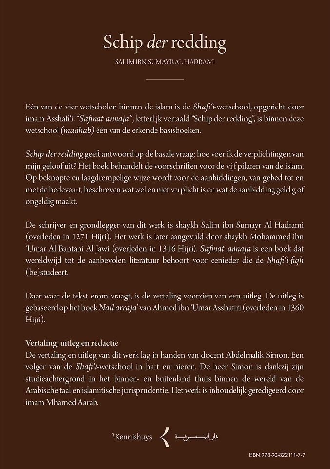 Eén van de vier wetscholen binnen de islam is de Shafi‘i-wetschool, opgericht door imam Asshafi‘i. “Safinat annaja”, letterlijk vertaald “Schip der redding”, is binnen deze wetschool (madhab) één van de erkende basisboeken.