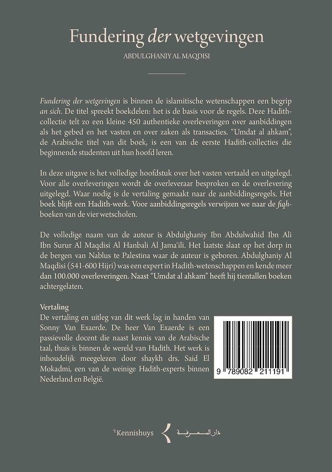 Fundering der wetgevingen is binnen de islamitische wetenschappen een begrip an sich. De titel spreekt boekdelen: het is de basis voor de regels. Deze Hadith-collectie telt zo een kleine 450 authentieke overleveringen over aanbiddingen als het gebed en het vasten en over zaken als transacties. “Umdat al ahkam”, de Arabische titel van dit boek, is een van de eerste Hadith-collecties die beginnende studenten uit hun hoofd leren.
