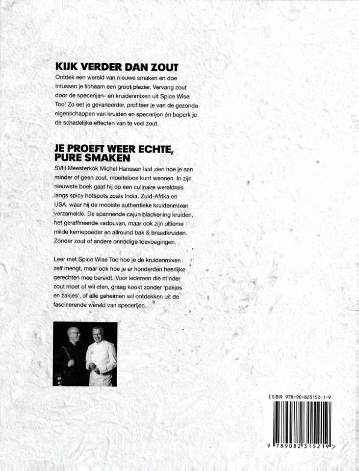 Leer met Spice Wise Too hoe je de kruidenmixen zelft mengt, maar ook hoe je er honderden heerlijke gerechten mee bereidt. Voor iedereen die minder zout moet of wil eten, graag kookt zonder 'pakjes en zakjes', of alle geheimen wil ontdekken uit de fascinerende wereld van specerijen.