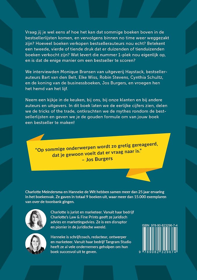 Meer over de auteursVraag jij je wel eens af hoe het kan dat sommige boeken boven in de bestsellerlijsten komen, en vervolgens binnen no time weer weggezakt zijn? Hoeveel boeken verkopen bestsellerauteurs nou echt? Betekent een tweede, vierde of tiende druk dat er duizenden of tienduizenden boeken verkocht zijn? Wat levert die nummer 1-plek nou eigenlijk op, en is dat de enige manier om een bestseller te scoren?