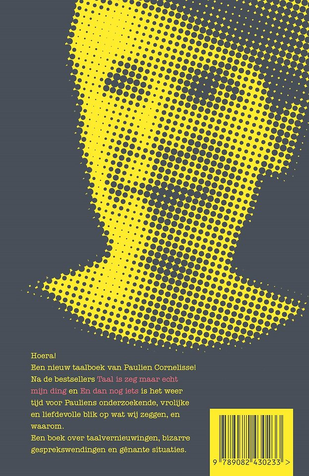 In 'Taal voor de leuk', haar derde taalboek, deelt ze haar nieuwste fascinaties. Waarom zegt de conducteur in de trein ‘UhLelystad’ in plaats van gewoon ‘Lelystad’? Kun je beter ‘ARG’ whatsappen of ‘ARGH’? Wat zijn dwangclichés? Auto-irritaties? En wat is woordaanelkaarplakkisme? Scherp, onderzoekend en met een vrolijk relativeringsvermogen neemt Paulien de taal onder de loep.