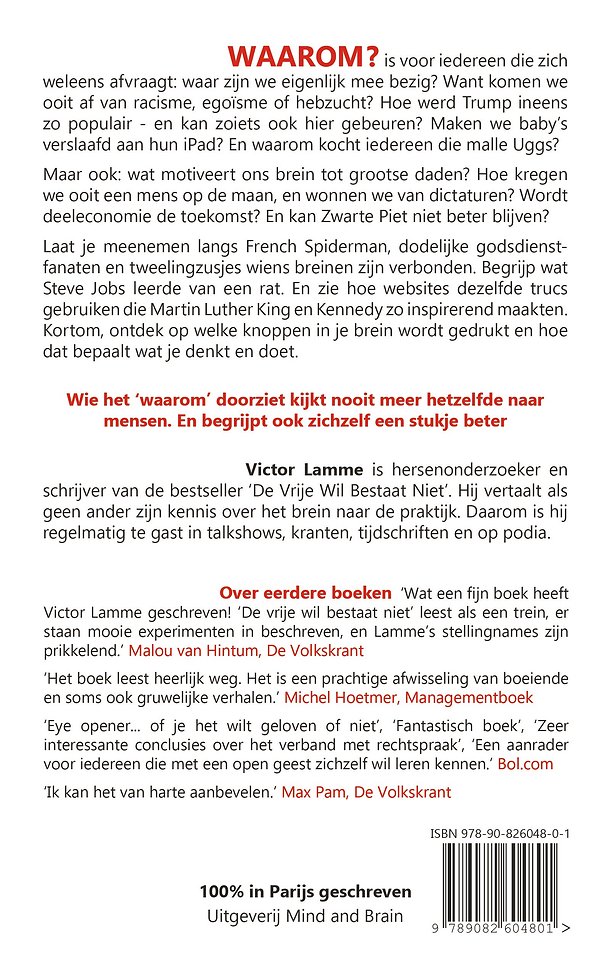 In Waarom? Op zoek naar wat ons werkelijk drijft gaat hersenonderzoeker Victor Lamme op zoek naar de werkelijke drijfveren van de mens. Een goed gekozen titel, want het dekt de inhoud met slechts één woord. Waarom doen we de dingen zoals we ze doen, is iets wat we ons vaak afvragen.