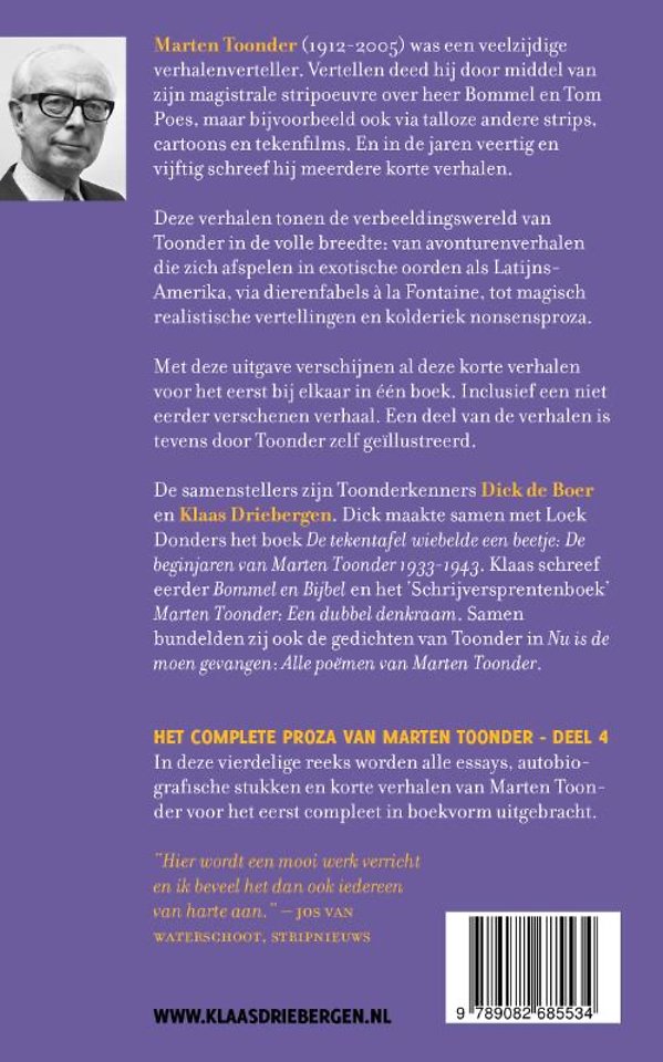 Marten Toonder was een veelzijdige verhalenverteller. Vertellen deed hij door middel van zijn magistrale stripoeuvre over heer Bommel en Tom Poes, maar bijvoorbeeld ook via talloze andere strips, cartoons en tekenfilms. En in de jaren veertig en vijftig schreef hij meerdere korte verhalen.