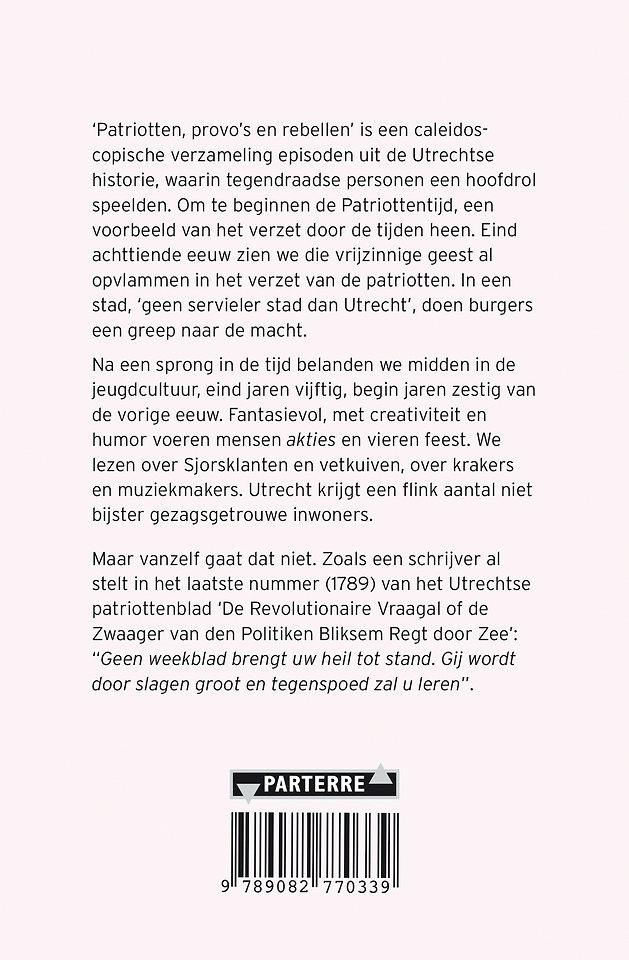 'Patriotten, provo's en rebellen' is een caleidoscopische verzameling episoden uit de Utrechtse historie, waarin tegendraadse personen een hoofdrol speelden. Om te beginnen de Patriottentijd, een voorbeeld van het verzet door de tijden heen. Eind achttiende eeuw zien we die vrijzinnige geest al opvlammen in het verzet van de patriotten. In een stad, 'geen servieler stad dan Utrecht', doen burgers een greep naar de macht.