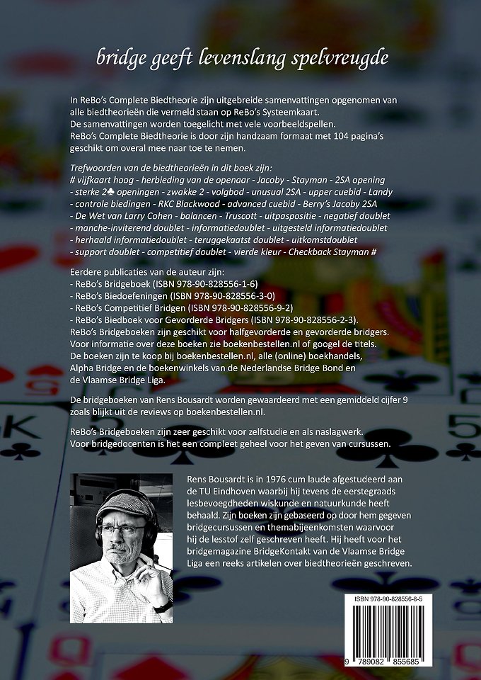 NB: ReBo’s Complete Biedtheorie PAPERBACK met softcover uitvoering is ALLEEN VERKRIJGBAAR via boekenbestellen.nl en de reguliere boekhandel. Daarnaast is hetzelfde boek met HARDCOVER uitvoering ALLEEN VERKRIJGBAAR via boekenbestellen.nl