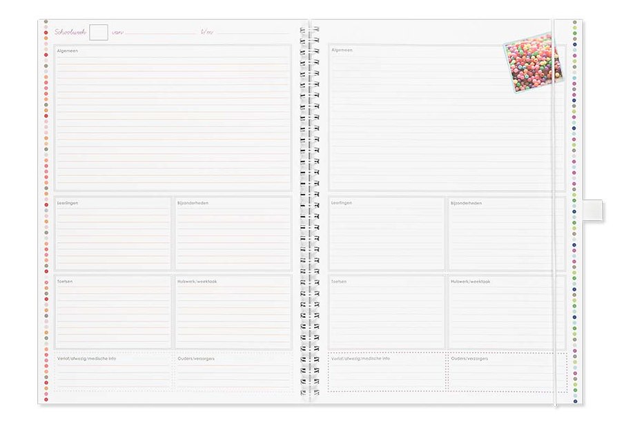 Met het Overdrachtsboek deel je wekelijks eenvoudig aantekeningen en overdrachtsinformatie met je collega. Bovendien houd je deze gegevens zo in één overzichtelijk document bij elkaar. Voorin is ruimte voor praktische info omtrent het digibord, hulpouders, stagiairs etc. Per week heeft elke leerkracht een eigen bladzijde in een eigen kleur, waar je alle relevante informatie kwijt kunt voor je duopartner. Deze 3e uitgave van het Overdrachtsboek is wire-o gebonden, bevat een penhouder en heeft in de omslag een geïntegreerd elastiek én een penhouder. Inhoud: 40 lesweken. Formaat: A4.