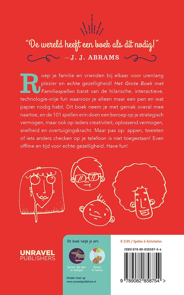 Echte gezelligheid, dat is waar deze uitgave van Unravel voor staat. In Het Grote Boek met Familiespellen vind je 101 hilarische, interactieve en uitdagende spellen waarvoor je niets meer nodig hebt dan alleen een pen en papier.
