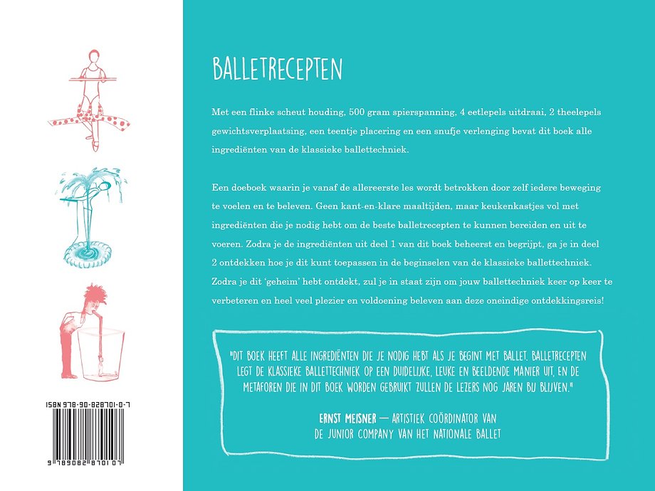 “Dit boek heeft alle ingrediënten die je nodig hebt als je begint met ballet. Balletrecepten legt de klassieke ballettechniek op een duidelijke, leuke en beeldende manier uit, En de metaforen die in dit boek worden gebruikt zullen de lezers nog jaren bij blijven.” Ernst Meisner artistiek coördinator van de Junior Company van Het Nationale Ballet