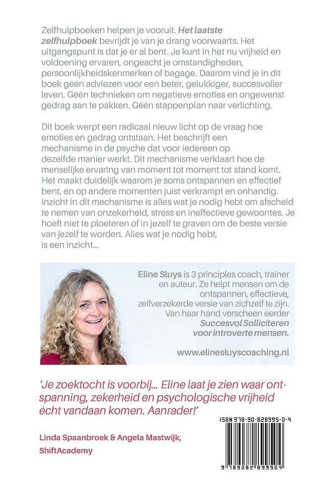 Zelfhulpboeken helpen je vooruit. Het laatste zelfhulpboek bevrijdt je van je drang voorwaarts. Het uitgangspunt is dat je er al bent. Je kunt in het nu vrijheid en voldoening ervaren, ongeacht je omstandigheden, persoonlijkheidskenmerken of bagage. Daarom vind je in dit boek géén adviezen voor een beter, gelukkiger, succesvoller leven. Géén technieken om negatieve emoties en ongewenst gedrag aan te pakken. Géén stappenplan naar verlichting.