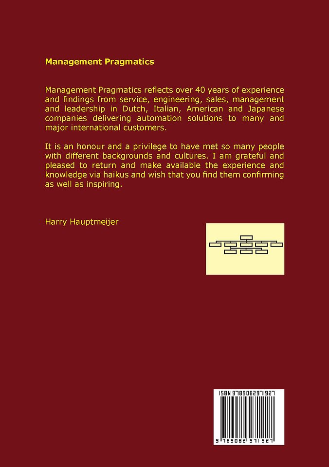 Management Pragmatics reflects over 40 years of experience and findings from leadership, management, sales, engineering and service in Dutch, Italian, American and Japanese companies delivering automation solutions to many and major international customers.