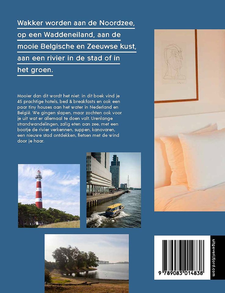 Wakker worden aan de Noordzee, op een Waddeneiland, aan de mooie Belgische en Zeeuwse kust, aan een rivier in de stad of in het groen. Mooier dan dit wordt het niet: in dit boek vind je 45 prachtige hotels, bed & breakfasts en ook een paar tiny houses aan het water in Nederland en België. We gingen er slapen en zochten voor je uit wat er allemaal te doen valt. Urenlange strandwandelingen, zalig eten aan zee, met een bootje de rivier verkennen, suppen, kanovaren, een nieuwe stad ontdekken, fietsen met de wind door je haar. Alle adressen zijn bezocht en beschreven door zeven onafhankelijke journalisten: Lydia Michiels van Kessenich, Ellie Brik, Toni De Coninck, Marie Monsieur, Joline van den Oever, René Bego en Sylvia Meijer-Villafane